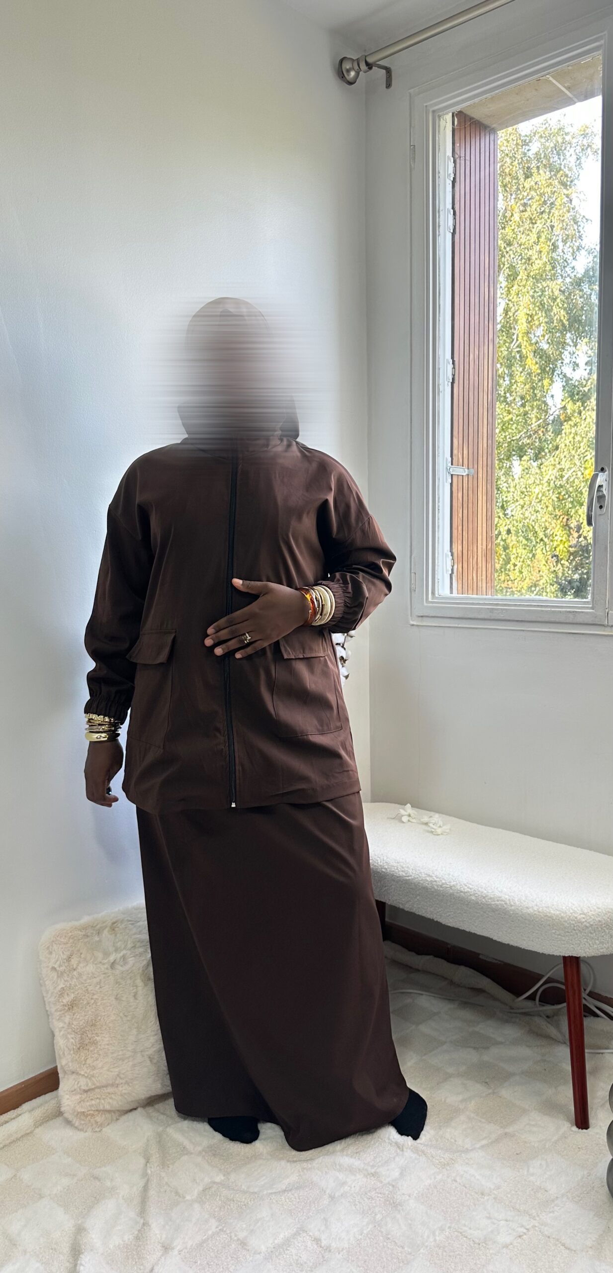 - Jupe longue : fluide avec poches latérales