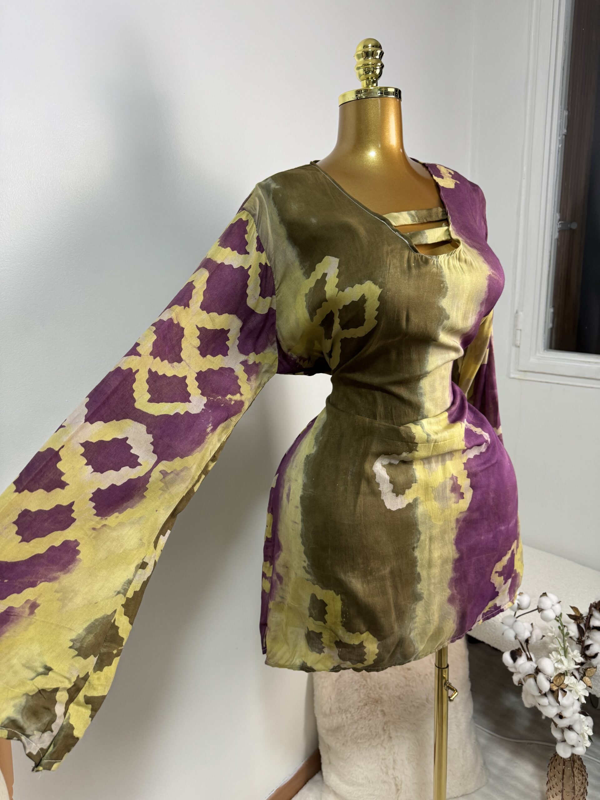Sublimez votre style avec cette magnifique robe en tissu Dampé aux sublimes nuances de couleurs.