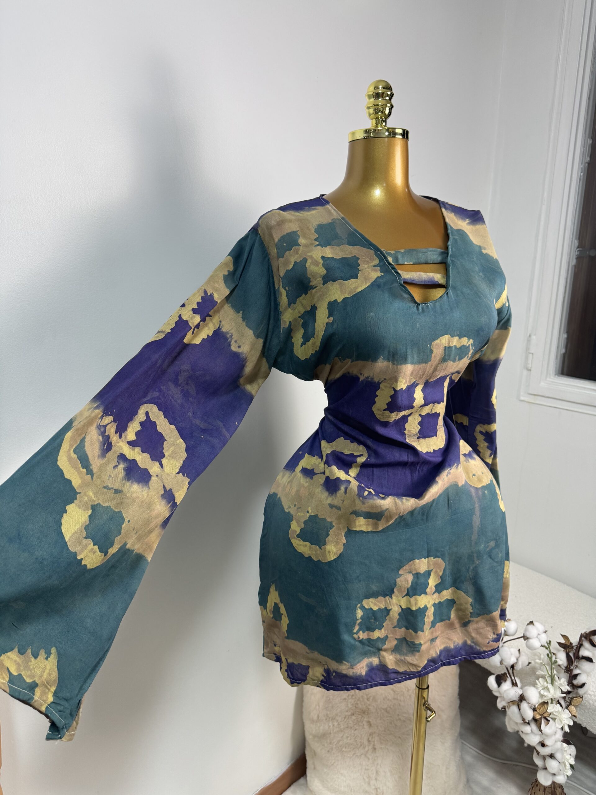 • Manches longues évasées style papillon pour une touche élégante et fluide