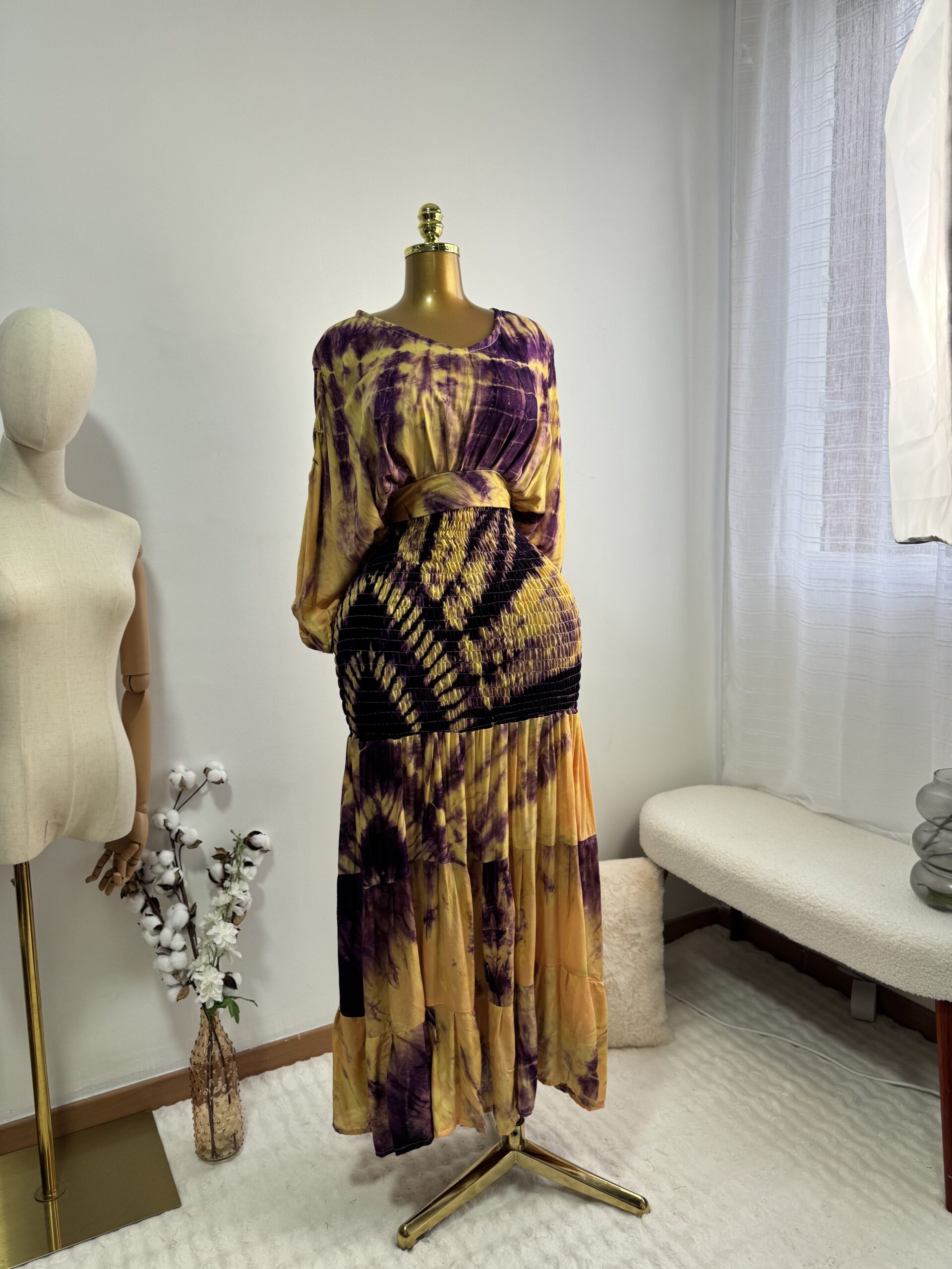 Attention ‼️il se peut qu’il reste quelques résidus de la teinture sur certains tissus mais rien de grave cela part au lavage , le processus de fabrication a été réalisé à la main.