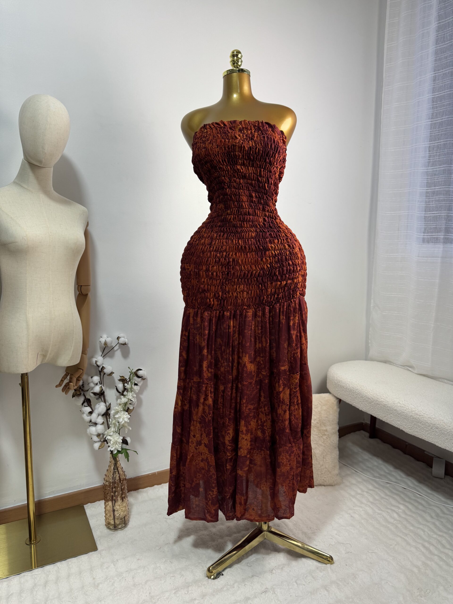 - Style : Longue, bustier et smockée