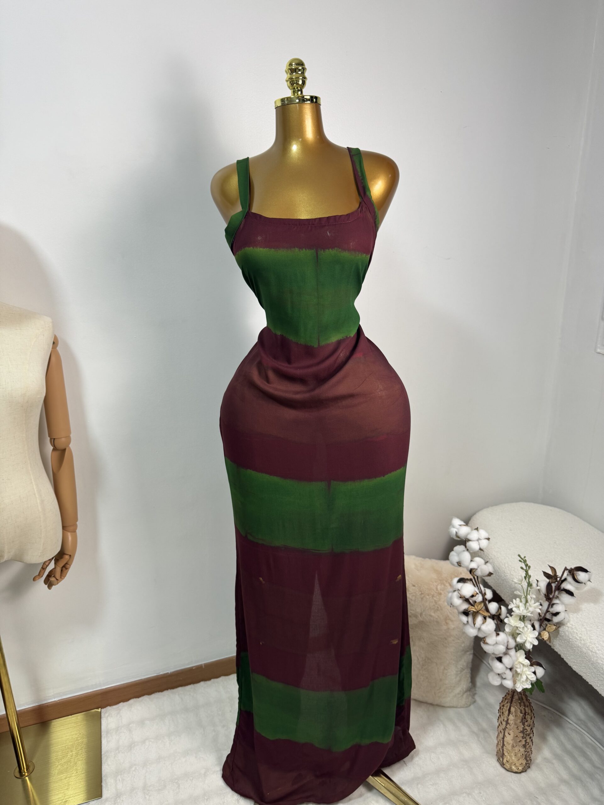 Laissez-vous séduire par cette robe longue en tissu Dampé, une pièce élégante et féminine qui sublime la silhouette avec raffinement.